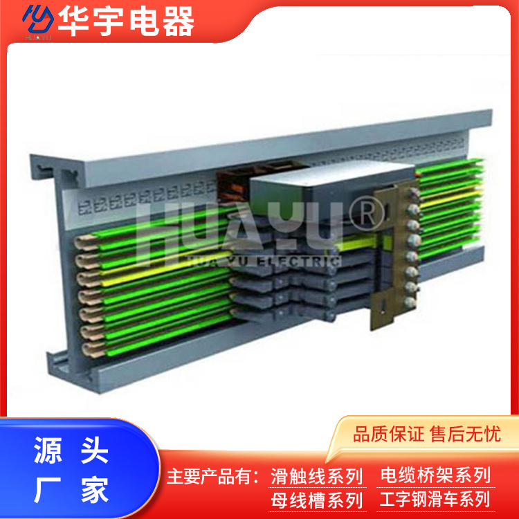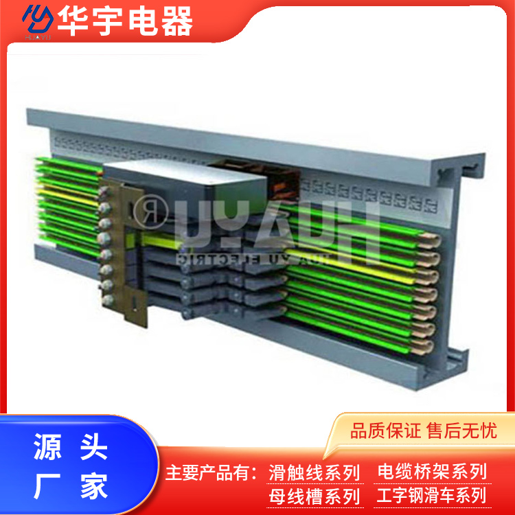 The HXPnR-M, HXPnR-C, HXPnR-Ω, and HXPnR-U series single-pole combined sliding busbars are composed of M-type, C-type, Ω-type, and U-type copper conduits, along with the corresponding PVC insulated sheath, external collector, and matching brackets, ports, bell mouths, and joint seats. Known for their compact size, compact structure, stable performance, and flexible combinations, these products are widely used in the transportation lines and inspection lines of industries such as automotive, telecommunications, machinery, chemicals, tobacco, and electrical appliances for mobile power supply and signal transmission.