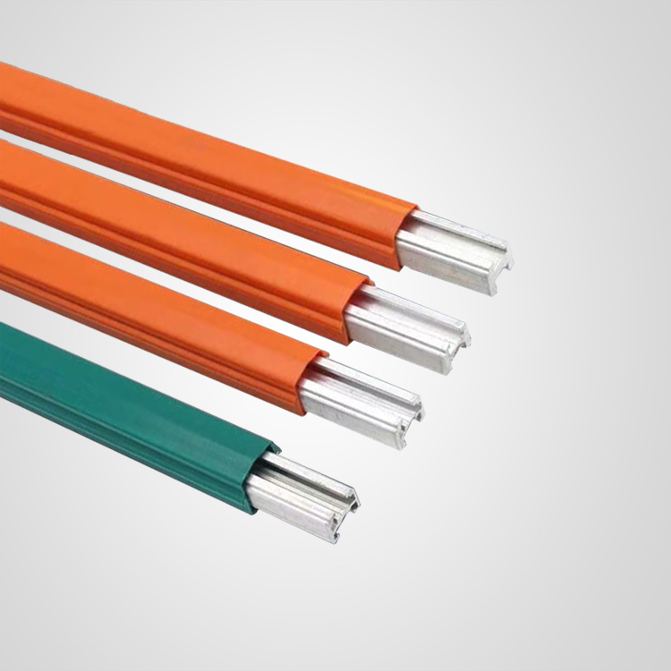 HXPnR-H Type protective safety sliding contact wire, with its conductive core made of "H"-shaped aluminum profiles, hence also known as "H"-type energy-saving sliding line unit. Energy saving refers to the significant reduction in power loss during transmission compared to sliding contact wires with angle steel as the main body. The resistivity of aluminum is much lower than that of steel, and it has a smaller density. Rolling aluminum into an "H" shape ensures a certain conductive cross-sectional area while enhancing overall rigidity and strength. However, aluminum has a low surface hardness and is not wear-resistant. To make the aluminum base material suitable for practical use as a conductive sliding contact wire, the "H"-shaped beam is formed into an arch shape, and wear-resistant stainless steel profiles are embedded here according to the specified process. These "H"-shaped stainless steel profiles serve as the frictional transmission surface of the conductive blocks in the conductor, and the embedding process ensures a tight fit between the stainless steel and aluminum profiles. As the current passes through the stainless steel body, it ensures that the conductive blocks in the conductor maintain contact and transfer the current through frictional contact, guaranteeing the continuous current during the operation of the lifting machinery.