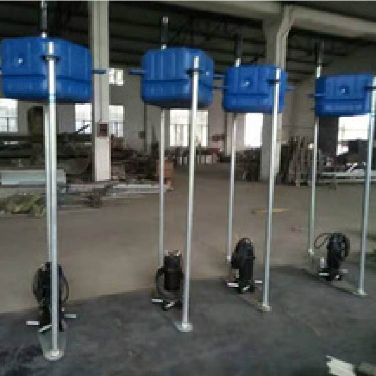 Buoyant aeration machines are a new type of submersible aeration pump, which is an improvement on the existing submersible centrifugal aeration pump. They replace the original installation method, which relies on the pump's own weight for positioning at the bottom of the pool, with a design that uses dual inlet pipes and is suspended in the water surface by a buoyant buoy. Installation and maintenance are simple, and there is no need to enter the pool; the equipment can be lifted out directly.