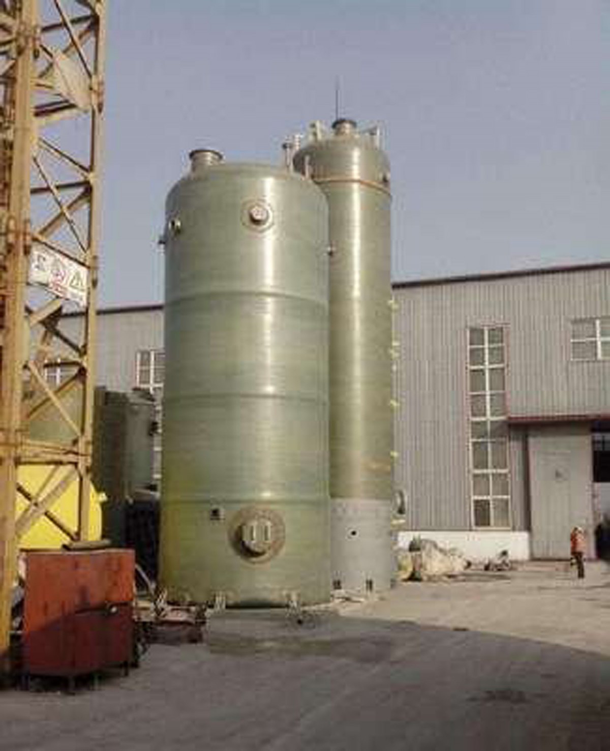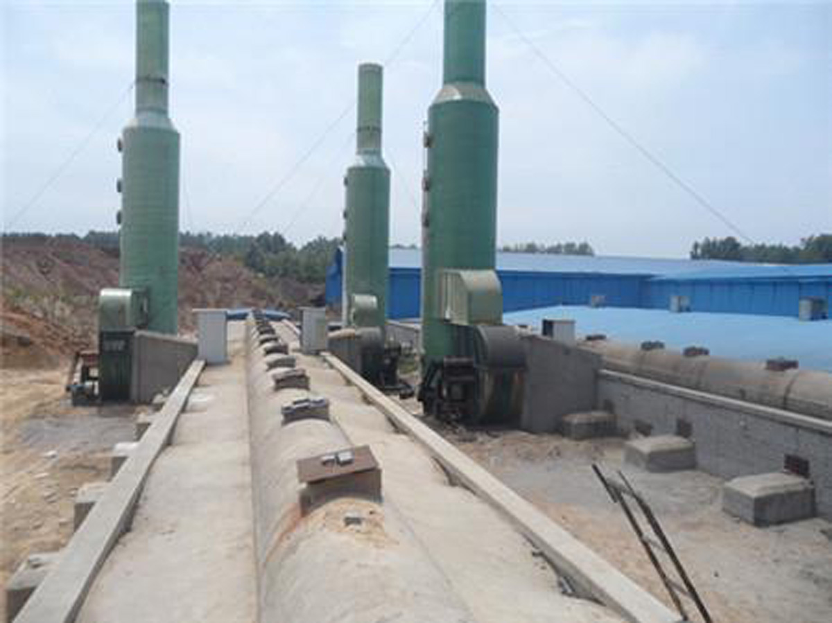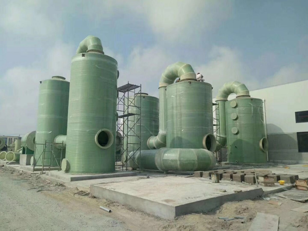 Desulfurization tower mainly consists ofFRPVessel, sieve plate, spray device, overflow holes, cleaning holes, and the like constitute the glass fiber desulfurization tower. The working principle of the glass fiber desulfurization tower is: waste gas containing harmful substances enters the glass fiber vessel through the inlet flue gas opening, where the harmful gas reacts with alkali water (usually referred to asNaOHChemical reactions occur, thus ensuring the emissions meet the standard discharge requirements.