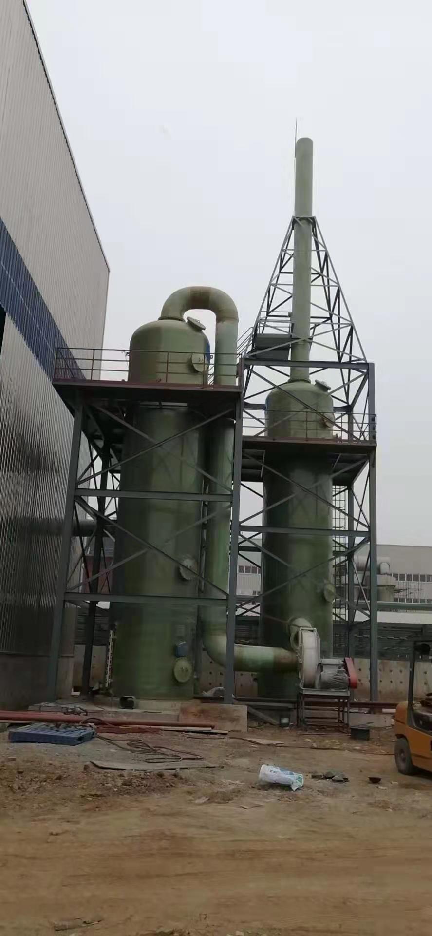The purification tower, also known as a spray tower, waste gas tower, wash tower, or scrubber tower, operates on the principle that waste gases are introduced into the tower through ducts and pass through a filling layer. The waste gases undergo a chemical reaction with sodium hydroxide, and after being purified, are released into the atmosphere. The sodium hydroxide solution is sprayed down and recirculated back to the base of the tower for reuse. The waste gases processed by the purification tower fully comply with the Shandong Province's waste gas emission standards, ensuring the gases meet the standards for discharge.