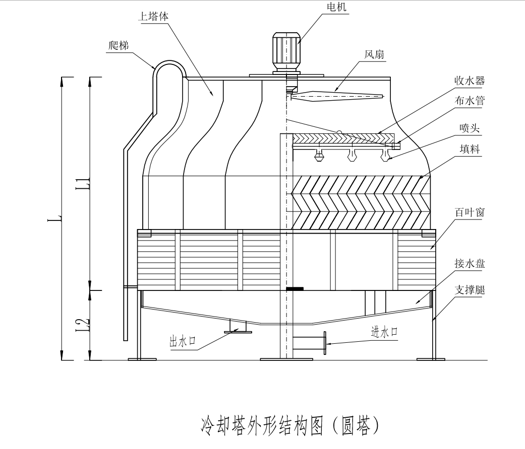 ④ By cooling tower shape: square, round, crossflow, counterflow, and non-filling spray series cooling towers, etc.
