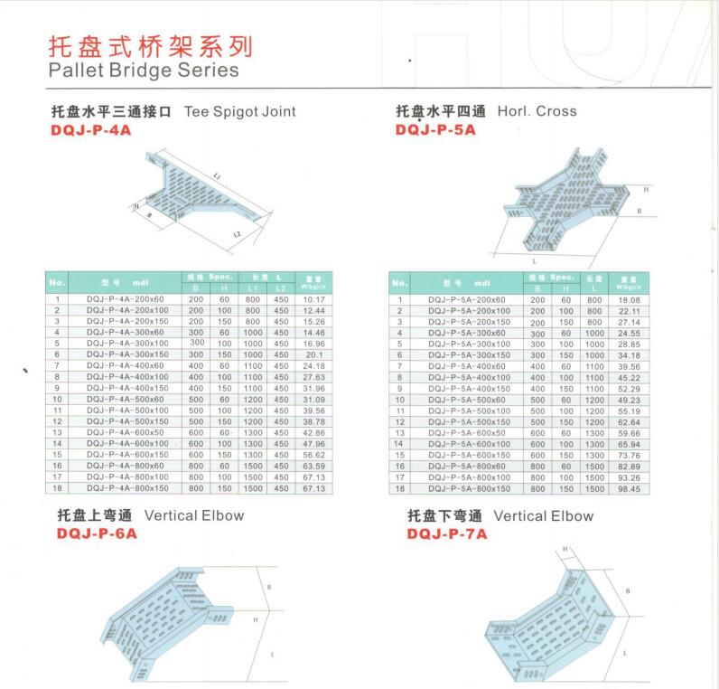 Bridge Channel Fittings: Cover plates, connecting pieces, screws, elbows, end caps, cover latches, seven-way latches, wall brackets, hangers, crossarms, vertical supports, threaded rods, iron expansion screws, connecting wires, combination set of three, combination set of five.