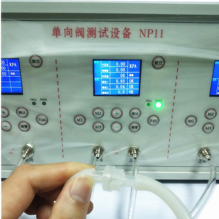 | Function | 1. Test one-way valve: air passage pressure, low-pressure air tightness, high-pressure air tightness; 2. Only requires compressed air from an air compressor, connect to AC220V power supply, and the product can be tested; 3. Equipped with high-precision pressure sensors, precise pressure regulating valves, capable of accurately measuring the air pressure during conduction and the reverse air tightness, high-pressure air tightness, for customers | |