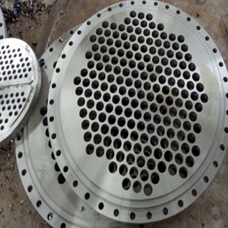 Tube sheet, which is a round steel plate with holes slightly larger than the outer diameter of the tubes, serving as a circular steel that fixes the tubes and seals the medium in heat exchangers. A component used to insert and weld the tubes in place, performing this function.