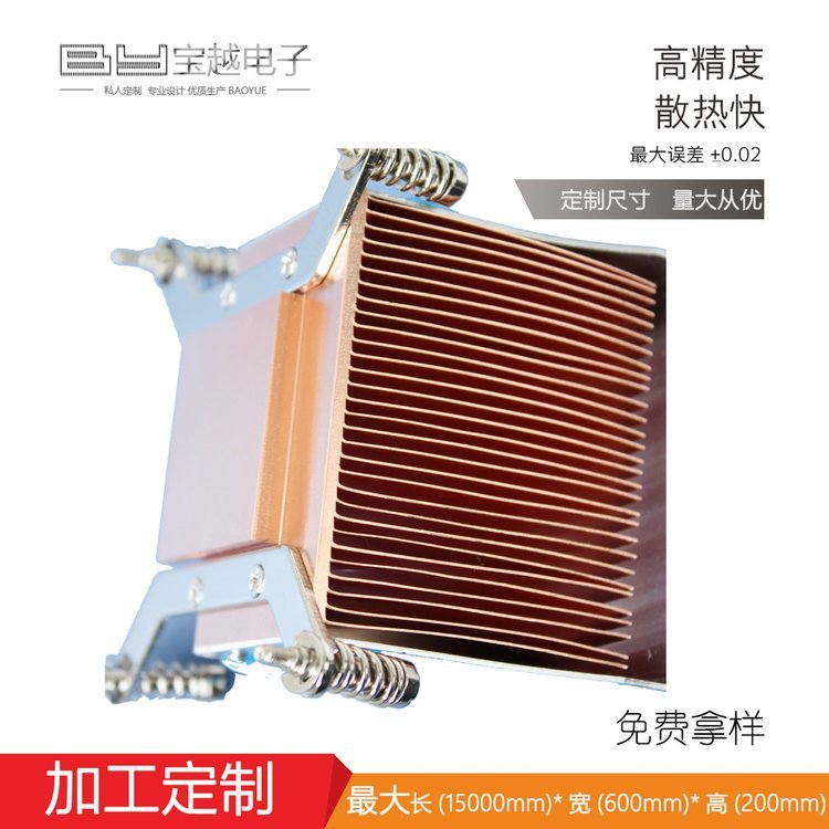 AlthoughCooler processing equipmentAluminum extruded heat sinks offer competitive pricing and low manufacturing costs. However, due to the inherent softness of aluminum, the ratio of fin thickness to fin height typically does not exceed 1:18. In response to the industry's demand for increased surface area without compromising on space, manufacturers have proposed a more suitable solution: densifying the fins to increase their quantity. Baoyue adheres to the principle of customer-first service, providing comprehensive and attentive support. If you require...Cooler processing equipmentContact us if so, and we'll provide you with exceptional service to ensure your satisfaction.