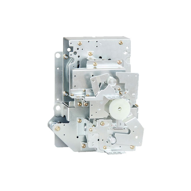 Grounding Closure: Insert the mechanism handle into the grounding operation shaft at the bottom of the mechanism, rotate clockwise approximately 90°. The grounding energy storage spring releases its energy instantaneously as it compresses past the midpoint, pushing the grounding switch to complete the grounding closure. At this point, the mechanism interlock locks, preventing main circuit closure.