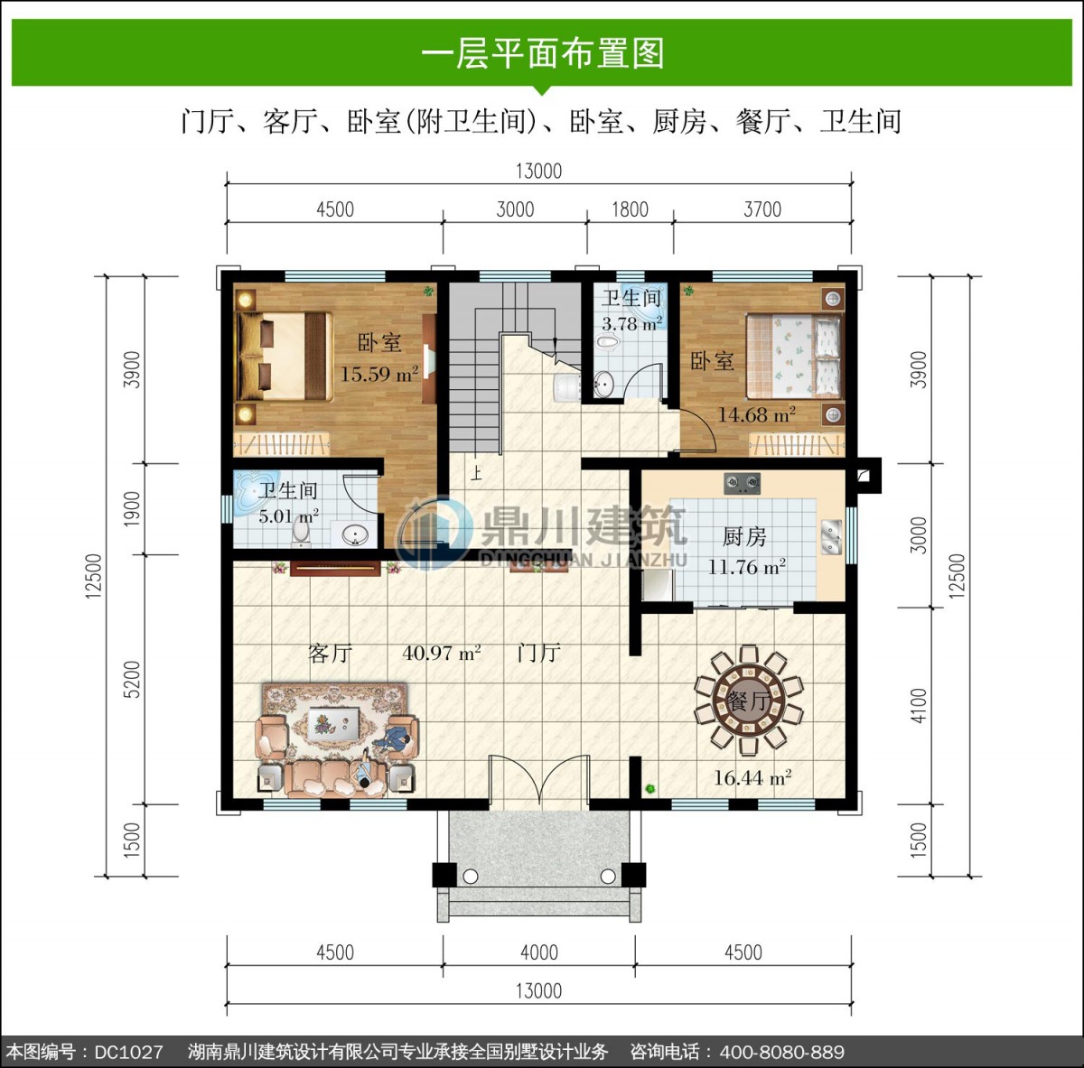 Note: The drawings are designed by Hunan Dingchuan Architectural Design Co., Ltd. and have been registered for copyright protection with the National Copyright Administration. All drawings are designed in accordance with national building industry standards, and the structural safety is subject to mandatory legal liability within the architectural design industry. If contractors encounter difficulties understanding the drawings or require technical support during construction, please call our customer service at 400-8080-889, and we will be happy to assist you.