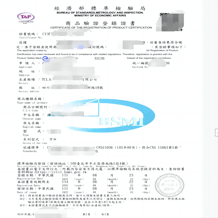 BSMI is the abbreviation for the English "Bureau of Standards, Metrology and Inspection" of the Taiwan Ministry of Economic Affairs.