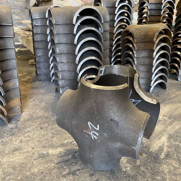 Four-way tees are used for pipe fittings and pipe connections. Also known as four-way pipe fittings or four-way tees, they are used where the main pipeline branches off. Four-way tees come in both equal and unequal sizes; equal-size four-way tees have ends of the same dimension; unequal-size four-way tees have the main pipeline ends of the same size, but the branch pipeline ends are smaller. Four-way tees are pipe fittings used at pipeline branching points. The hydraulic expansion forming process of a four-way tee involves using a hydraulic press to inject liquid into a pipe blank of the same diameter as the four-way tee. The process uses the two horizontal cylinders of the hydraulic press to synchronize movement and compress the pipe blank. As the pipe blank is compressed, its volume decreases, causing the liquid inside to increase in pressure. When the pressure reaches the required level for the branch pipe to expand, the metal material expands into the branch pipe under the combined action of the pressure from the side cylinders and the liquid inside the pipe blank.