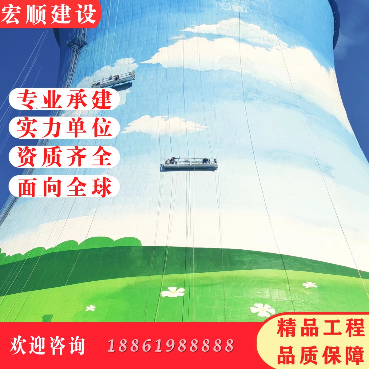Chimney Aesthetics Project: High-altitude decoration, chimney beautification, brush chimney color rings, paint chimney navigational marks, coat aviation symbols, paint navigational color rings, write on chimneys, illuminate chimneys, repaint chimney exterior, apply chimney color rings, chimney decorative modifications, paint water tower,电厂hyperbolic cooling tower coating and graphic painting, beautification, decoration, etc.