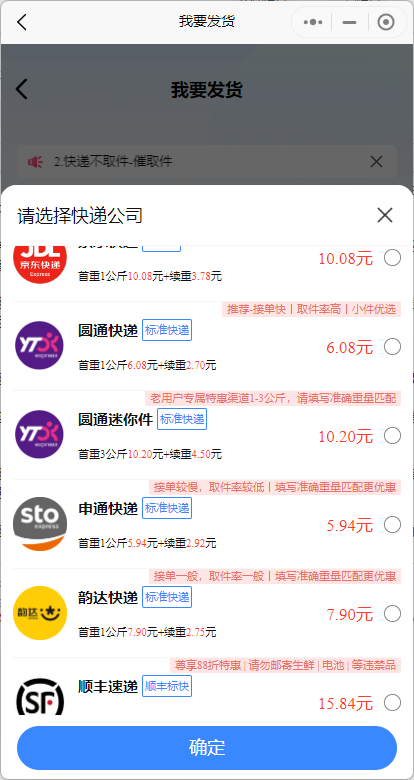 The carrier network mini-program offers not only price advantages but also excellent service quality. It supports online scheduling for couriers to pick up packages, eliminating the hassle of users going to the courier company themselves. Additionally, the mini-program provides real-time logistics tracking, allowing users to keep up with their package's status at any time, ensuring a transparent and reliable shipping process.