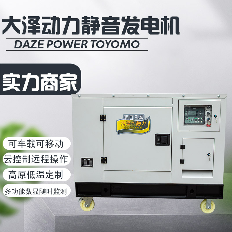 Daize Power 25kw Silent Diesel Generator TO28000ETSilent Model: The integrated body, ultra-high power diesel generator features standard operational design, easy operation, fuel efficiency, cost-effective, high durability, and reliability. It requires time for maintenance, is equipped with protective devices for safe operation. This unit is compact, easy to use, fuel-efficient, cost-effective, portable, and affordable, making it a choice for household emergency and some small service facility lighting emergencies. However, it requires an emergency power source, as power and warmth are invaluable resources that are not as normal as power outages and life itself, so it won't affect situations without electricity. The mobile silent diesel generator set can be used as a primary or backup power source and is widely used. It typically consists of a diesel engine, generator, control box, and components such as fuel tank, battery for starting and control, protective devices, and an emergency cabinet. The unit can be mounted on a base, used in a fixed position, installed on a trailer, or moved around. The diesel generator set is a non-continuous operation power generation equipment; if it runs continuously for more than 12 hours, its output power will exceed the rated power.