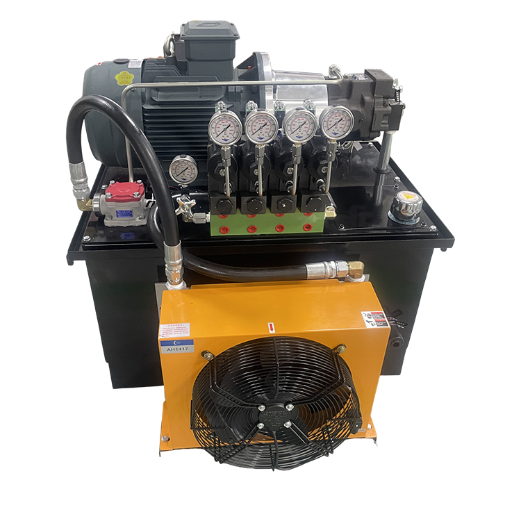 The hydraulic station is composed of a pump assembly, an integrated block or valve assembly, an oil tank, and an electrical box combination. The functions of each component are: