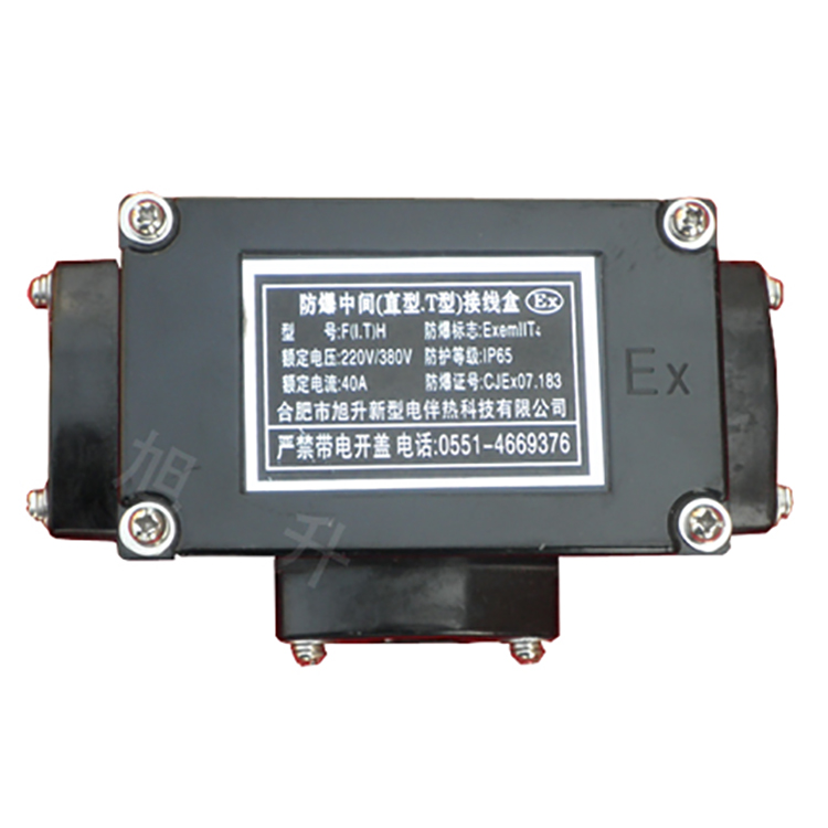 Explosion-proof tee junction boxes are used for connecting electric heat tracing cables in explosion-proof areas, extending the length of the heat tracing cables, or for applications on the same pipeline requiring different power levels of heat tracing cables and complex configurations like tee lines. The explosion-proof marking is "Exedm IIB T4", and when paired with the heat tracing cables, it is suitable for use in Zones 1 and 2 of factories where explosive gas mixtures are present. The housing is made of high-strength plastic.