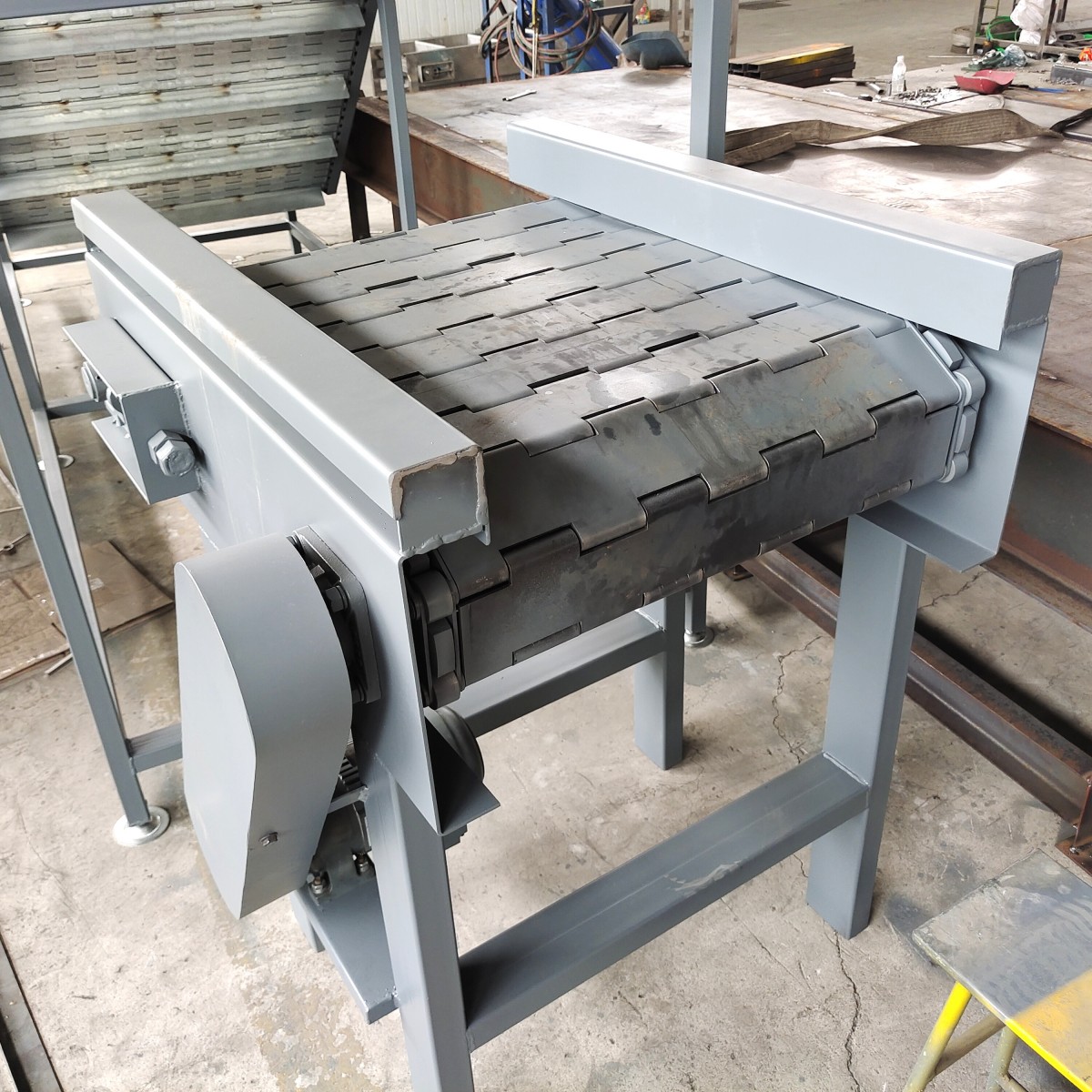 Enclosed Load-Bearing Chain ConveyorA necessity for modern food processing lines, it saves time and labor, enhancing economic benefits. Conveyor belts come in metal mesh, chain plate, and belt styles. The materials include plain steel and stainless steel, allowing selection based on the product. Conveyors can operate continuously, run smoothly, and easily, transporting products steadily and in order. Enclosed heavy-duty chain plate conveyors are widely used in industries such as food processing, vegetable washing, cargo handling, and chemical products.