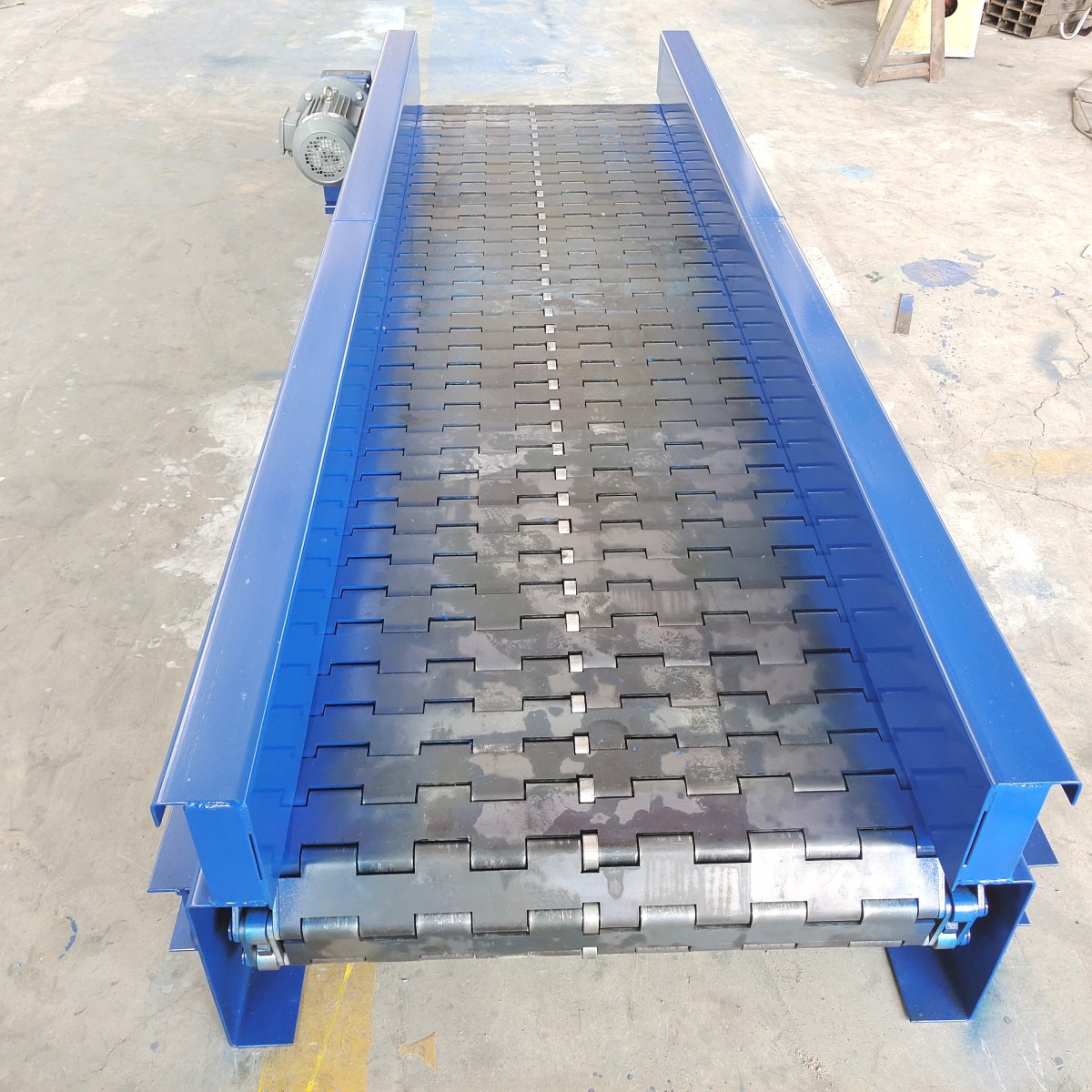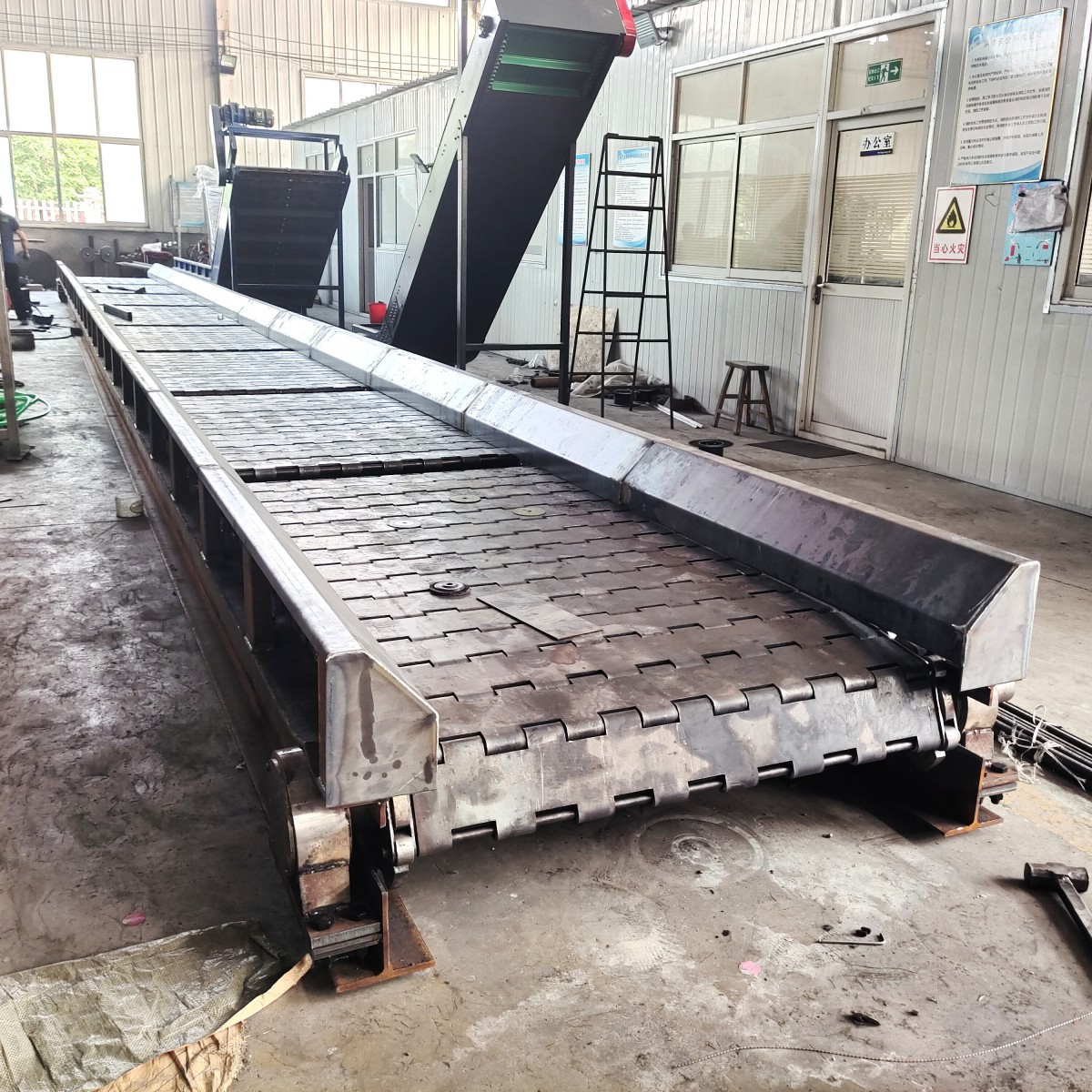 Heavy-duty chain plate feeding machineThe supporting structure, primarily designed to provide a running track for the roller chain of the conveyor, and to offer a sturdy support component for the fixed chain plates. The design of the chain plate hoist comes in three types: