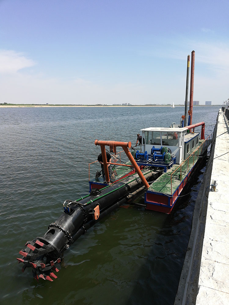 The cutter suction dredger is a widely used piece of equipment in beach reclamation and sand mining projects. It employs a rotating cutter head mounted at the front of the suction tube to cut and stir riverbed sediment, then uses powerful pump force to transport the dredged material through conveyance pipelines to the sediment storage area. Its dredging, transporting, and unloading processes can be completed continuously in one operation. It is an efficient and cost-effective sediment dredging device, making it an excellent underwater excavation machine.