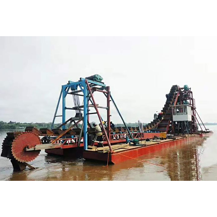 挖沙船是在河道里采沙的专用机器,由浮体浮起整体装置。配有挖掘装置、筛选装置、提升装置、传送装置等。通过动力装置驱动挖斗上料,石块通过筛选后由输送带传出,沙子由输送带传到地点。