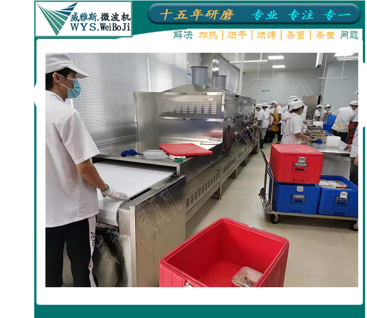 Chilled meal boxes are a high-tech chilled fast food option, offering a convenient lunch solution. These chilled bento boxes involve rapidly cooling cooked food after preparation, ensuring the entire process of production, packaging, transportation, and sales is conducted at low temperatures to maintain the freshness and flavor of the food. The "chilled bento" comes in a sealed package, clearly labeled with the production date, weight, storage method, shelf life, and ingredients. Consumers can remove the sealed film after purchase and heat the bento in a microwave within the specified shelf life for immediate consumption. In situations where multiple people are dining together, such as on high-speed trains, stations, or at trade shows with high foot traffic, where hundreds or even thousands of people need to eat simultaneously, standard heating equipment is often insufficient. Therefore, Guangzhou Weias Microwave Equipment Co., Ltd. has produced a large quantity of chilled meal heating equipment, the Weias Chilled Meal Heating Machine, to address this need.