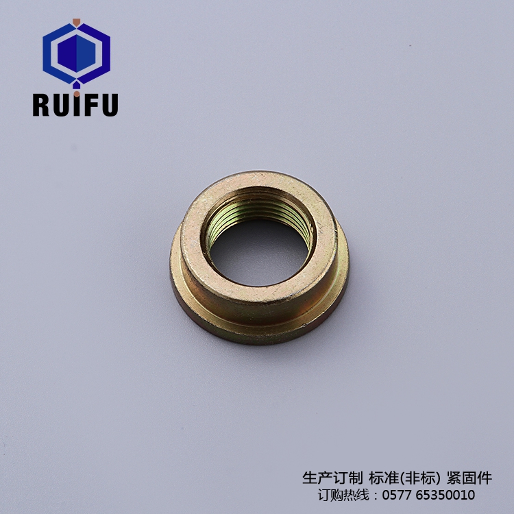 圆形台阶螺母常与圆形台阶螺母用止动垫圈配用,装配时将垫圈内舌插入轴上的槽内,而将垫圈的外舌嵌入圆形台阶螺母的槽内,螺母即被锁紧。常作为滚动轴承的轴向固定。