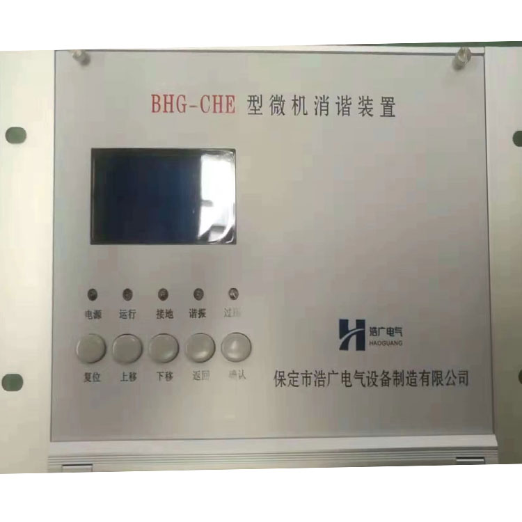 BHG-CHE 系列微机消谐装置是我公司针对66KV、35KV、10KV、6KV、3KV 及以下电压等级的中性点不接地或经电阻、消弧线圈接地系统,由于铁磁谐振而时常发生的电压互感器(PT)烧毁甚至爆炸的恶性事故,研制生产的新型智能消谐装置。装置利用DSP作为检测和控制的核心元件;采用大功率、无触点元件消谐;以液晶显示器(LCD)、信号指示灯;配以的智能化软件,动作更可靠、操作更简单、更直观、更准确。