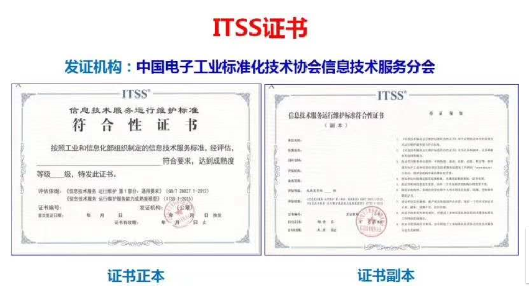 服务外包标准是对信息技术服务采用外包方式时的通用要求及规范;服务安全标准重点规定事前预防、事中控制、事后审计服务安全以及整个过程的持续改进,并提出组织的服务安全治理规范,ITSS证书延续,以确保服务安全可控。“IT 服务工程师”和“IT 服务项目经理”为中国电子技术标准化研究院推出的 ITSS 系列培训,通过该培训的人员可系统掌握 IT 运维的知识, 提升项目管理水平。