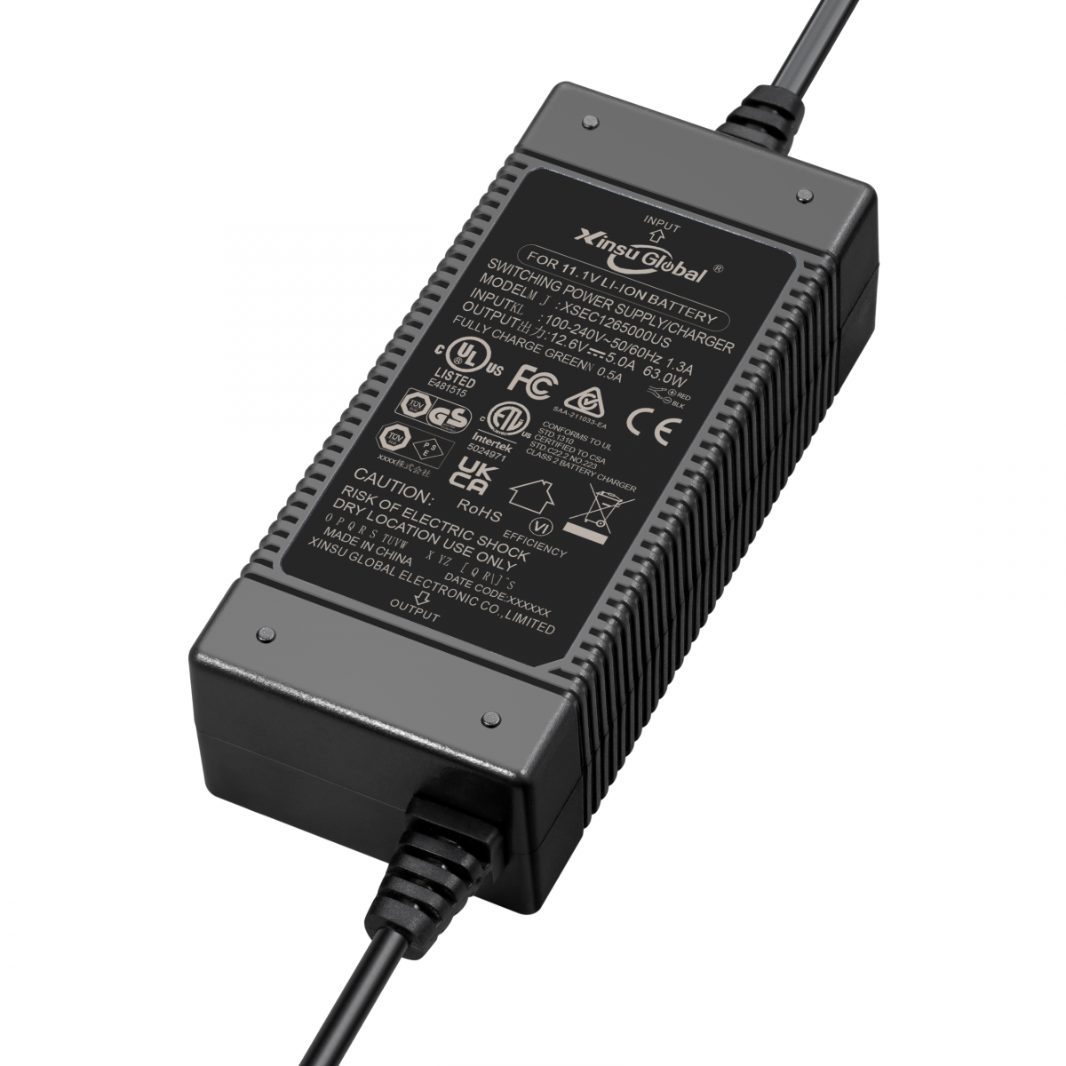 All charging adapters produced by XinSu International have passed safety certifications including UL, FCC, CACUL, JPPSE, EU CE GS, AUSA, RCM, C-tick, CN CCC, KRC, UKCA ICES, PSB, and more. Additionally, we comply with nine major safety standards: IEC62368, IEC60950, IEC61558, IEC60335, IEC60065, IEC61010, IEC60601, IEC60529, and GB4943.