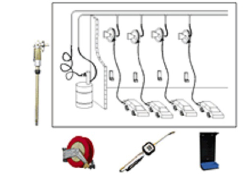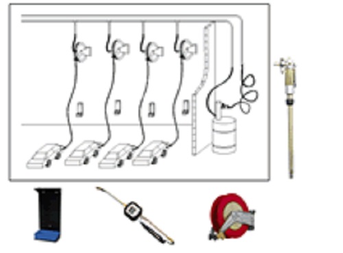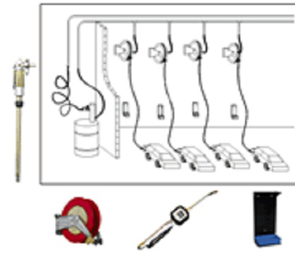 3. Utilizing a 5:1 pressure ratio pneumatic oil transfer pump, lubricant is conveyed through seamless steel pipes to the work shop, with multiple refueling stations. At each station, a flexible reel is installed (equipped with a 10-20m flexible hose connected to the reel, which can be adjusted as needed for convenience) and a drip-proof refueling nozzle.