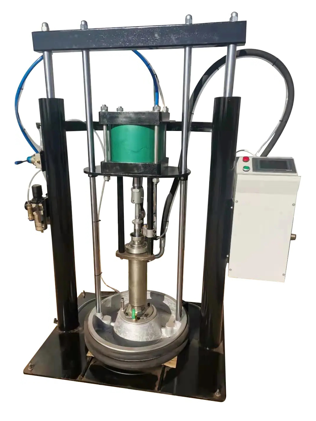A double-column butter pump is a device powered by compressed air, which uses the reciprocating motion of plungers to output pressure-lubricating grease.