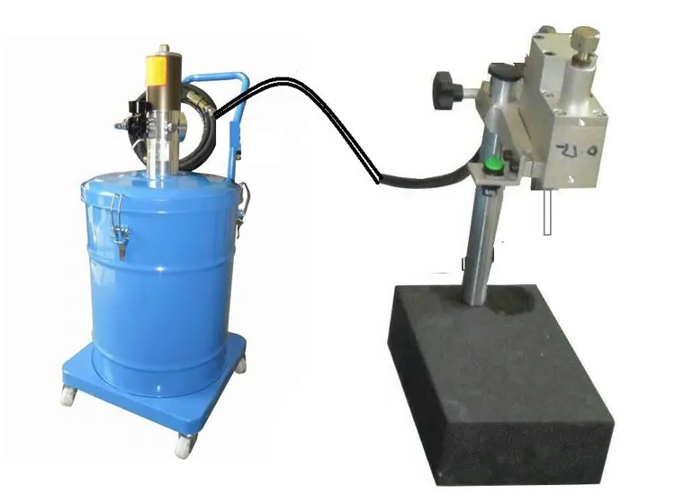 1. Portable pneumatic grease dosing kit, capable of fitting entire 10-30 kg oil drums inside or pouring loose oil into the drum.