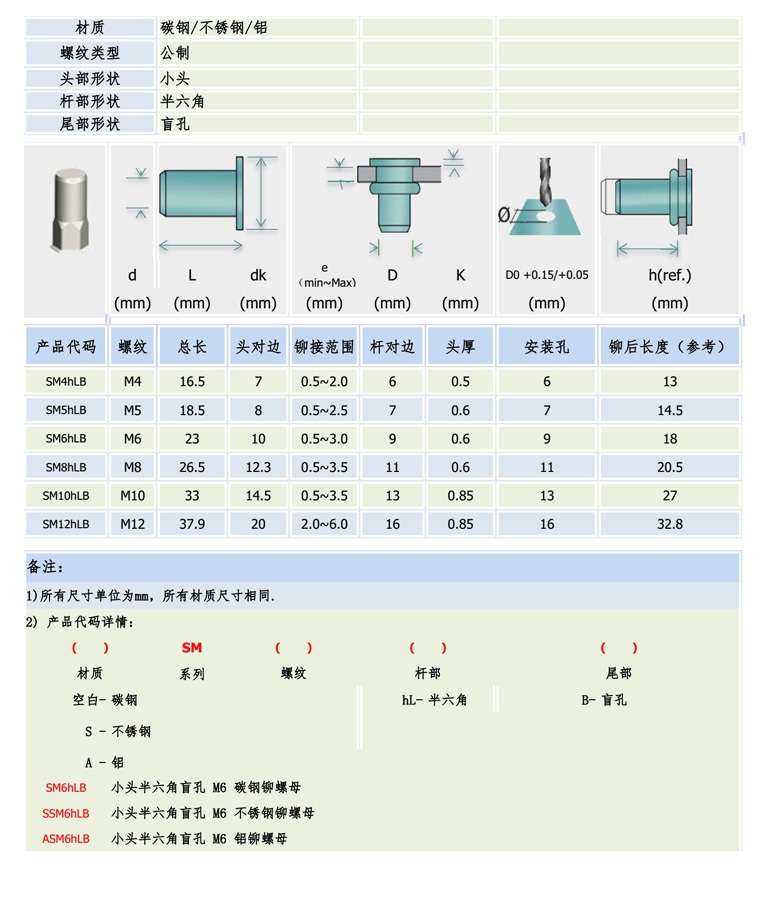 东莞市方信五金制品有限公司发布的小头半六角盲孔铆螺母图集库