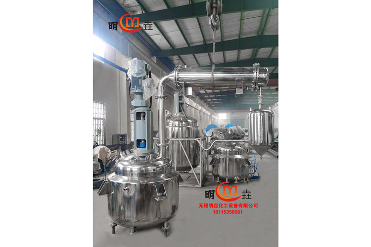 This complete set of equipment is essential for the production of unsaturated polyester resin, phenolic resin, epoxy resin, ABS resin, and paints. The complete set consists of a reaction kettle, a vertical distillation column, a horizontal condenser, a water storage tank, an overflow oil sump, pipelines (for dilute kettle), etc., with all parts in contact with materials made of stainless steel.
