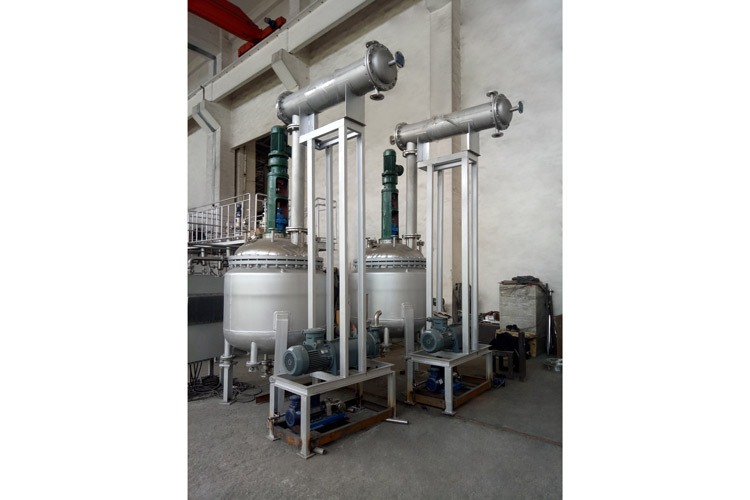 This complete set of equipment is a crucial device for producing unsaturated polyester resins, phenolic resins, epoxy resins, ABS resins, and paints. The complete set consists of a reaction kettle, vertical distillation column, horizontal condenser, water storage tank, overflow oil trough, pipelines (for dilute kettle), etc., with all parts in contact with materials made of stainless steel.
