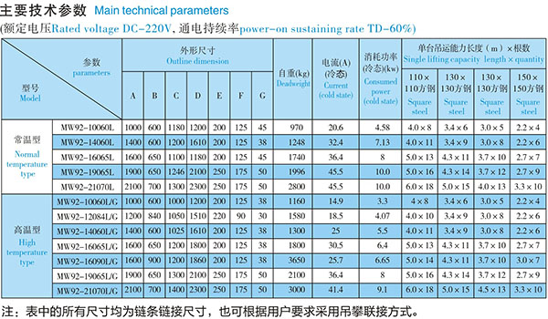 The features of this series of electromagnets include: the magnetic core is equipped with movable suction blocks, which can adjust to the shape of the material being attracted, minimizing the magnetic flux loss in the air gap. Suitable for lifting unevenly arranged billets, steel slabs, steel pipes, and interlaced ingots. Our company's specially designed electromagnets have movable magnets that are less prone to jamming, ensuring a longer lifespan.