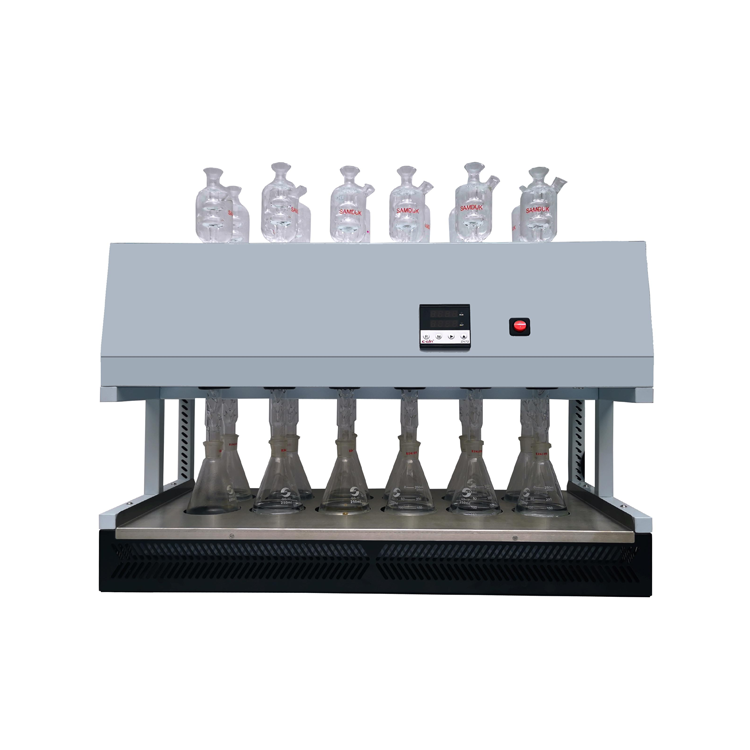 The instrument uses glass burr回流 tubes instead of spherical reflux tubes, and replaces the water cooling method with air cooling, thereby saving water, reducing space requirements, and enabling standardization of the instrument; the heating module employs infrared ceramic heating for even heating and independent control.