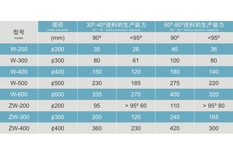 This unit is suitable for the recovery of dilute alcohol in the food, light industry, and chemical industry. It is also applicable for the distillation of methanol and other solvents. According to user requirements, this unit can distill dilute alcohol around 30°C to 90°C-95°C alcohol. The higher the finished product's alcohol content requirement, the greater the reflux ratio can be increased, but the yield will correspondingly decrease. The W-type can also be used for the distillation of methanol. The W-type is batch process, while the ZW-type is continuous process.
