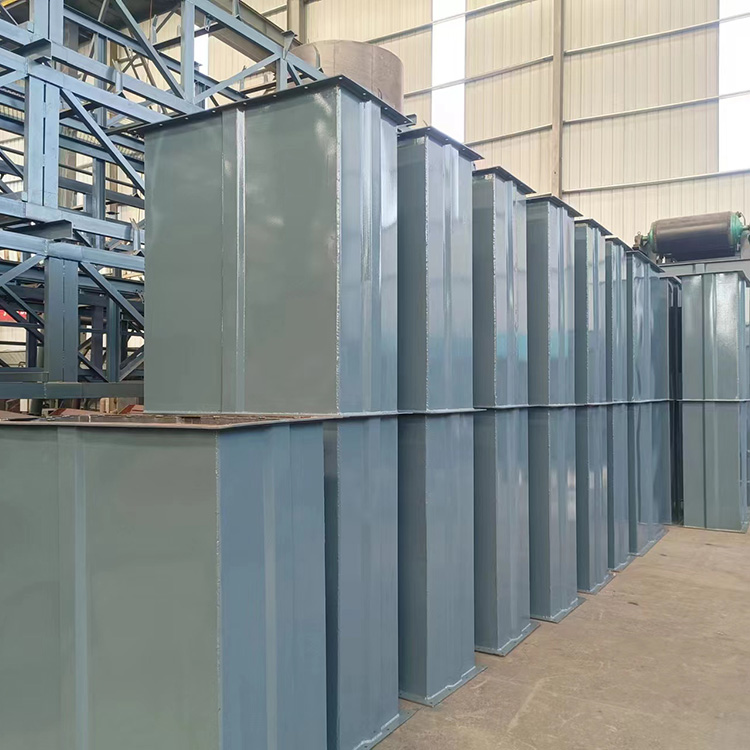 The hopper scoop material from the storage below, lifting it up to the top via a conveyor belt or chain, then flipping it down after passing over the top wheel. The bucket elevator pours the material into the receiving trough. Belt-driven bucket elevators typically use rubber belts, mounted on the drive pulley and the idler pulley above or below. Chain-driven bucket elevators usually have two parallel drive chains, with a pair of drive sprockets above or below and a pair of idler sprockets. Bucket elevators are generally equipped with a housing to prevent dust from飞扬 inside.