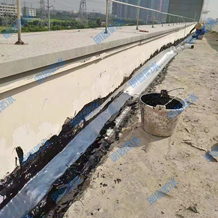 Expansion joint waterproof reinforcement construction plan uses waterproof materials matched to the structural layer defects and construction environment. For cracks and voids at the root angle of the expansion joint vertical wall and the floor slab base, use堵漏灵 (stop leak) for rigid reinforcement treatment. The rigid waterproofing layer is formed into an arc shape, and a non-curing rubber waterproofing layer is applied to the floor slab and the base of the vertical wall. The chemical reaction, combined with physical adsorption, forms a rigid-flexible waterproof bonding that is firmly attached, eliminating stresses generated by changes in the base layer of the expansion joint vertical wall. This allows the creep-resistant non-curing rubber waterproofing layer to have sufficient tensile strength, effectively resisting damage from external stresses.