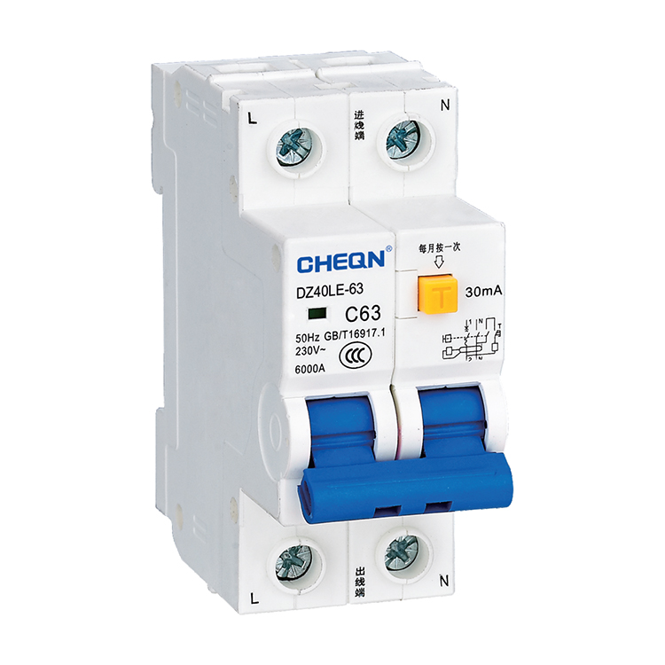 DZ40LE(RM40LE)-63 New Type Leaking Circuit Breaker (Leakage Protection Switch) This product features overload, short-circuit, residual leakage current operation, current limiting, and can also cut off the leakage as an open switch for protection, integrating with international high-tech products. The product has high operating characteristics and is suitable for AC 50Hz or 60Hz, single-pole two-wire rated voltage 230V, two-pole 400V, and rated current up to 63A circuits. When the leakage current of the line equipment or power grid exceeds the specified value, the residual current action circuit breaker can quickly disconnect the faulty power source in an extremely short time, ensuring safety for personnel and electrical equipment. It can be used to protect against overloads and short-circuits in lines or motors, and can also be used for infrequent switching starts of lines under normal conditions.