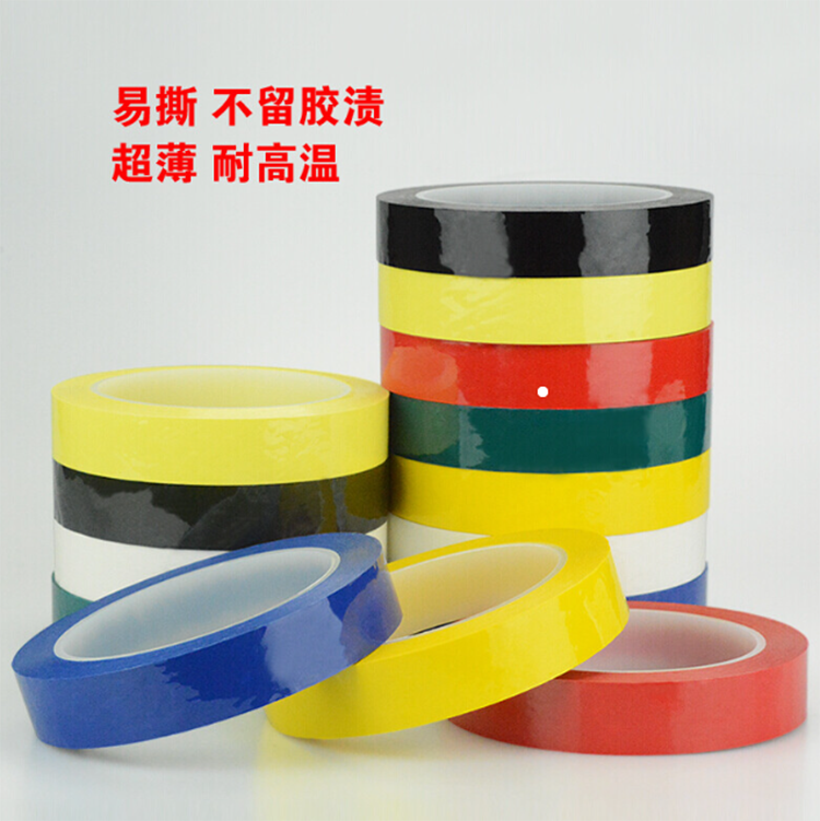 Light green PET tape features high heat resistance, high tensile strength, excellent chemical resistance, no residue, and meets ROHS environmental halogen-free standards. It is suitable for wave soldering mask on PCBs, electrical insulation, motor insulation, and fixing of lithium battery positive and negative poles, as well as die-cutting shapes.