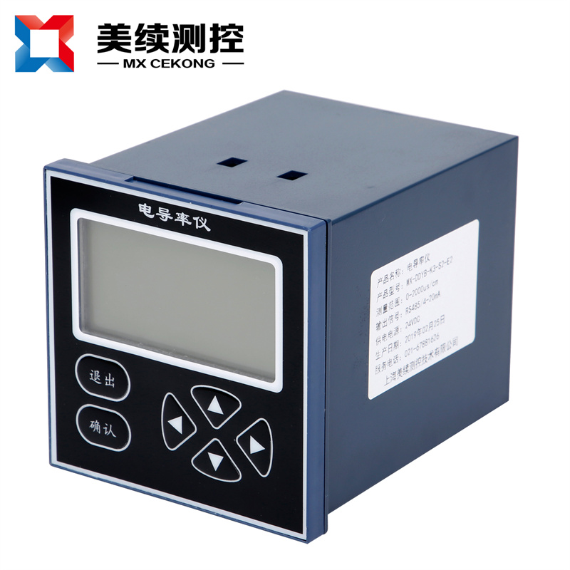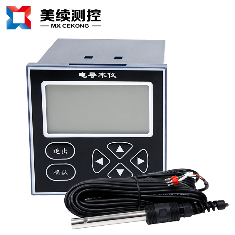 测量原理:为避免电极极化,仪表产生高稳定度的正弦波信号加在电极上,流过电极的电流与被测溶液的电导率成正比,仪表将电流由高阻抗运算放大器转化为电压信号后,经程控信号放大、相敏检波和滤波后得到反映电导率的电位信号;微处理器通过开关切换,对温度信号和电导率信号交替采样,经过运算和温度补偿后,得到被测溶液在25℃时的电导率值和当时的温度值。