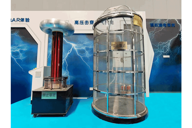 Demonstrate the awe-inspiring effects of artificial lightning and its principles through the discharge phenomenon of a Tesla coil, while understanding the dangers of high-voltage discharges.