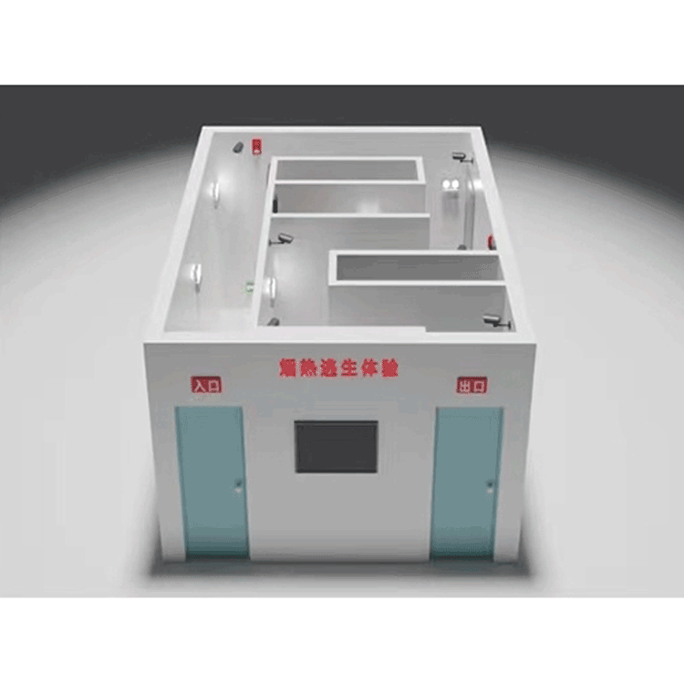 By simulating a fire environment, conduct evacuation training. The system allows for the assessment of essential skills such as calling the emergency line, shutting off the main power, covering the mouth and nose with a damp cloth, activating the alarm, avoiding the use of elevators, and crouching during evacuation. The system, through the联动 of sensors and software, can record the evaluation of evacuation skills and provide scores.