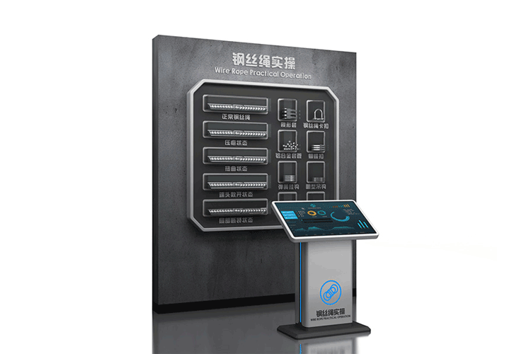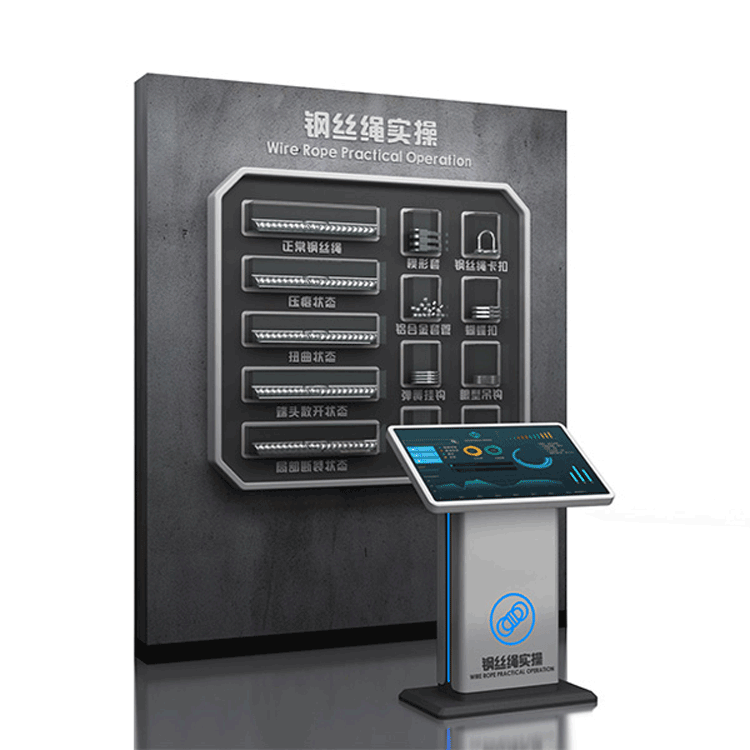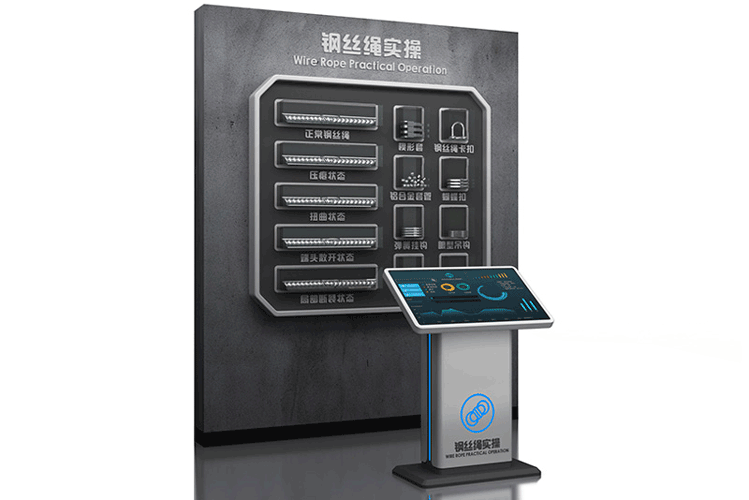 Wire Rope Practical Software System, a knowledge training and learning system developed based on 2D plane technology, primarily used for educating wire rope safety usage knowledge. It includes three major modules: wire rope introduction, wire rope cognition teaching, and knowledge assessment. It covers 6 common types of prohibited wire rope, 4 methods for wire rope termination treatment, and 6 types of matching wire rope lifting equipment. It covers the introduction, composition, classification, production process, common types of wire rope failure, termination methods, and matching lifting equipment, accompanied by some physical product displays.