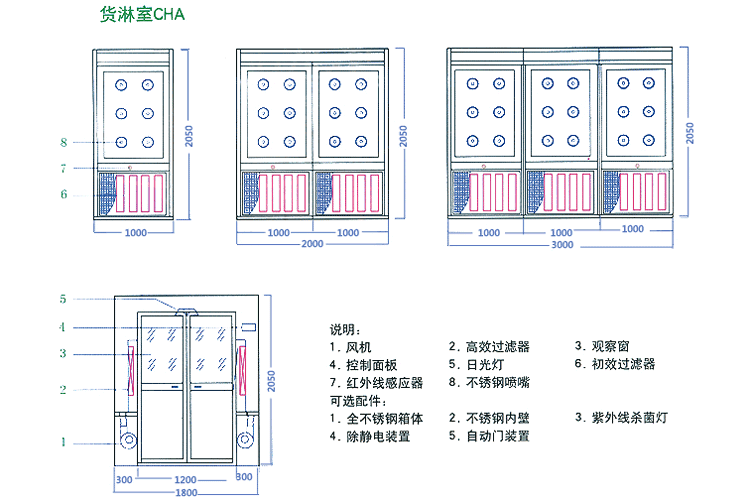 Charging room is a necessary passageway for goods entering a clean room, which can reduce the pollution issues brought by the in and out of goods. The two doors of the charging room are electronically interlocked, serving as an airlock to prevent unfiltered air from entering the clean room, thereby reducing dust pollution during the entry and exit of goods. Due to the differences in industries, product sizes, and batch quantities, the specifications of charging rooms vary greatly, and are generally designed and manufactured according to customer requirements.