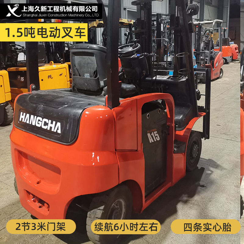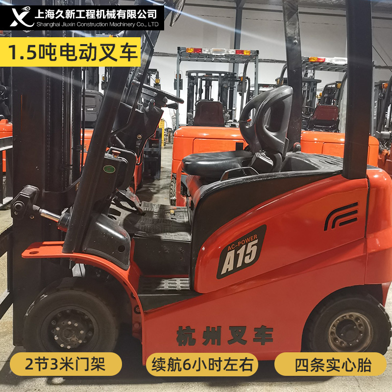 Hangcha A series 1.5-ton full AC electric forklift, 2-section 3-meter mast with four solid tires, 1800 hours, battery life of about 6 hours.