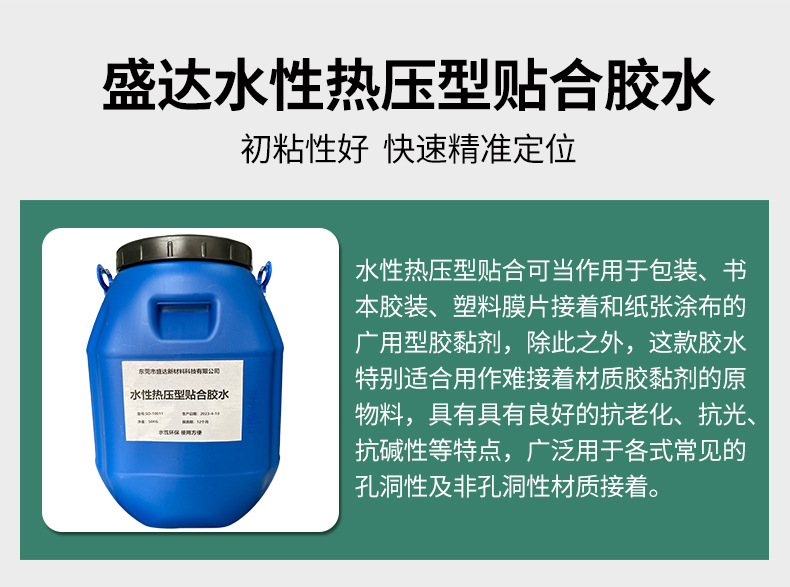 Dongguan Shengda New Material Technology Co., Ltd.Published byHot-pressed water-based adhesive, bonding agent, adhesive for EVA, water and alkali-resistantGallery Lib