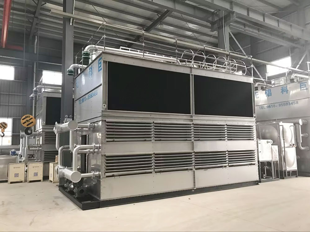 The internal recirculating cooling water exchanges heat and mass with the external spray water and air through the coil, preventing direct contact between the cooled water and air, which avoids water quality contamination. Due to the pre-cooling of the spray water with PVC packing, the heat exchange effect is more pronounced.