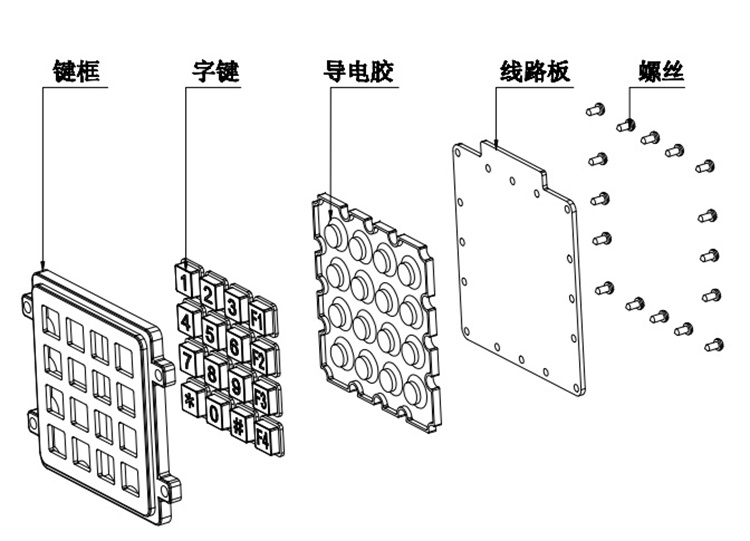 The keyboard assembly is composed of special PC/ABS key frames and dual-color keys. The product boasts excellent anti-vandalism, anti-corrosion, and waterproof properties. Particularly, it operates well under harsh conditions.